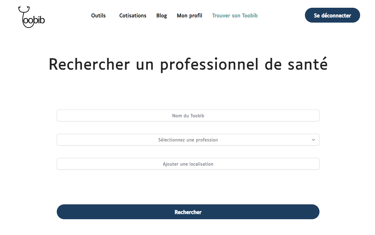 Au-delà de l'aspect esthétique, nous avons dû apporter des modifications spécifiques au processus d'authentification afin d'adapter les informations nécessaires à l'inscription d'un praticien de santé sur le site Toobib. Cela a impliqué l'intégration de champs d'inscription spécifiques et la mise en place d'un flux d'authentification fluide et intuitif pour les praticiens.